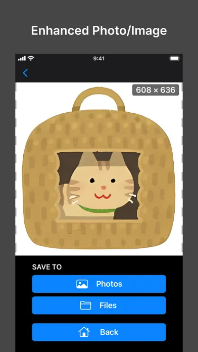 Select images from Photo Library or Files then tap the Upscale button. That's it!