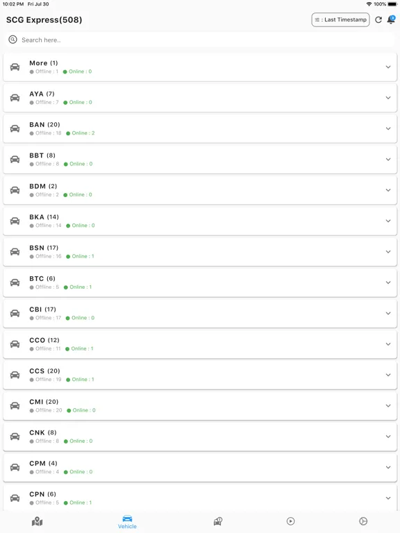 - แสดงรายการยานพาหนะ โดยแสดงตามกลุ่มข้อมูลต่างๆของยานพาหนะ รวมถึงแสดงข้อมูลต่างๆของยานพาหนะ