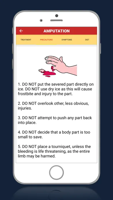 - Step by Step procedure for Dealing Amputation, Asthma, Bleeding, Blood in Urine, Breathing, Burns, ChestPain, Chocking, cuts, Diarrhoea, DogBites, Epilepsy, Fainting, Fever, Food Poisoning, Fracture, Head injury, Heart attack, muscle strain, No breathing, nose bleed, poisoning, rectal bleeding, snake bites, stings, stroke, sunburn.