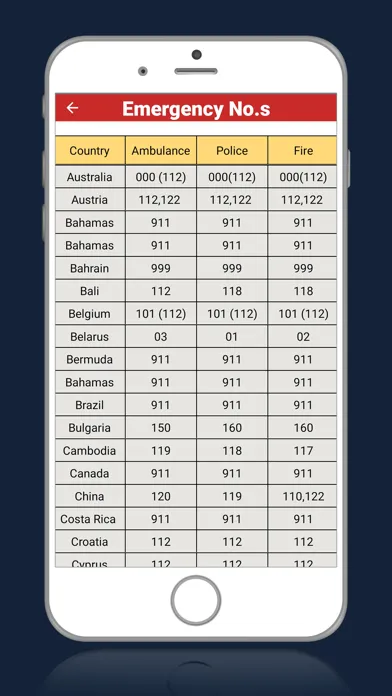 - Emergency numbers.