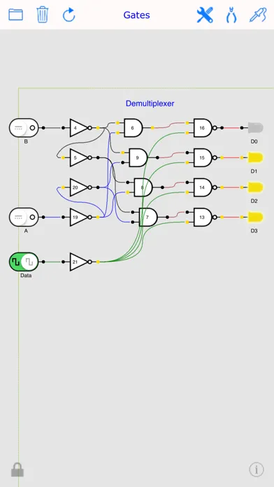 The app based on basic digital building blocks, logic gates. No knowledge of logic gates or digital circuits is required.
