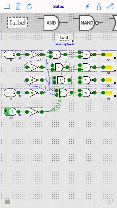 It offers the basic building blocks, wiring tools and a flexible plane to create live real-time digital circuits, ideal for anyone who wants to learn the basic principles of how computers work - especially students of digital engineering, learn how to create simple logic gates, latches, flip-flops, adders, shift registers and counters. it can help them perform complete lab experiments.