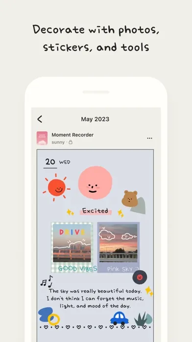 - Try your hand at creative journaling with MOODA's unique stickers.