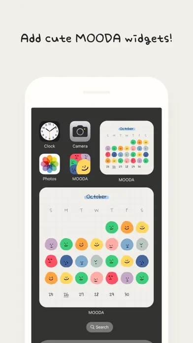 - Check your emotions for this month at a glance with the adorable MOODA calendar widget.