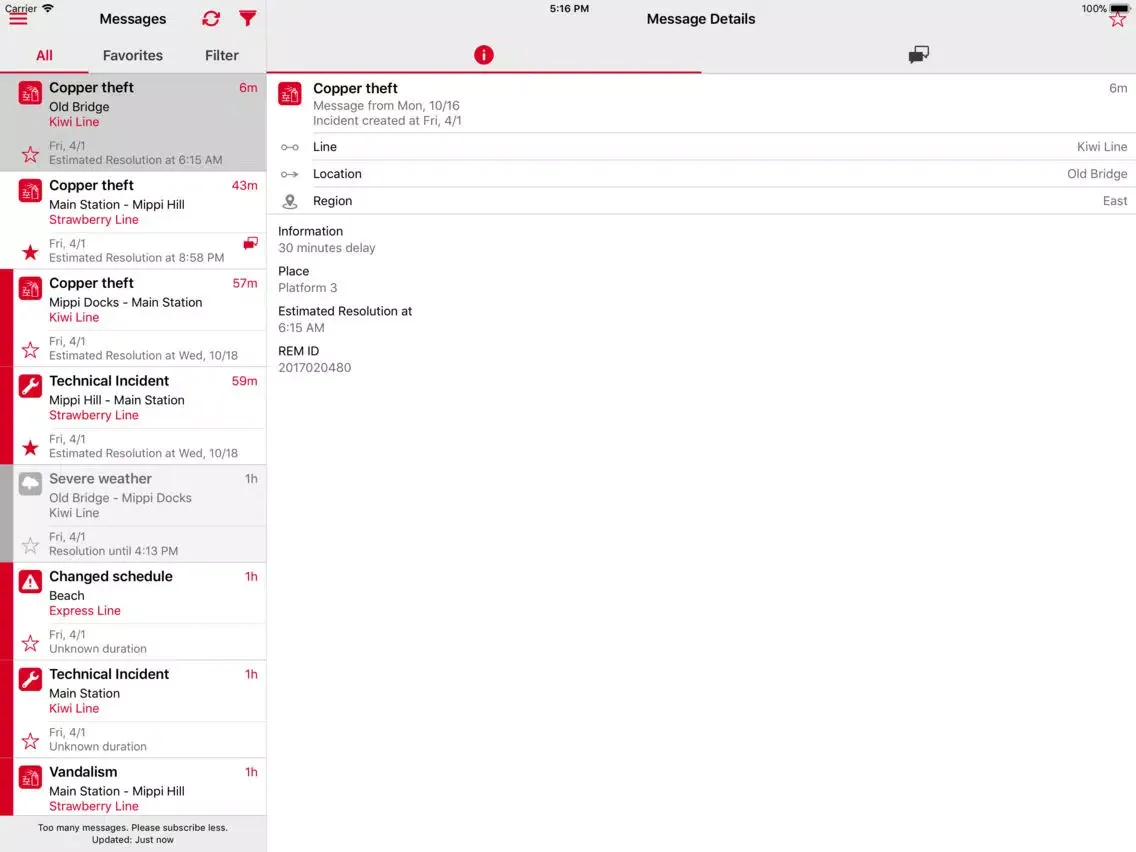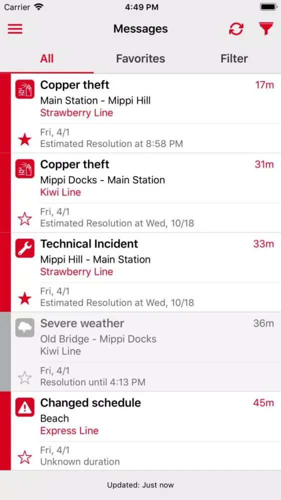 You will receive push notifications in case incidents are updated that you either marked as favorite (red star) or selected via the display filter (filter icon on the top right). Of course, you will be presented any other updates after opening the app.