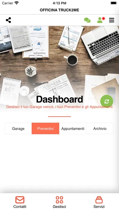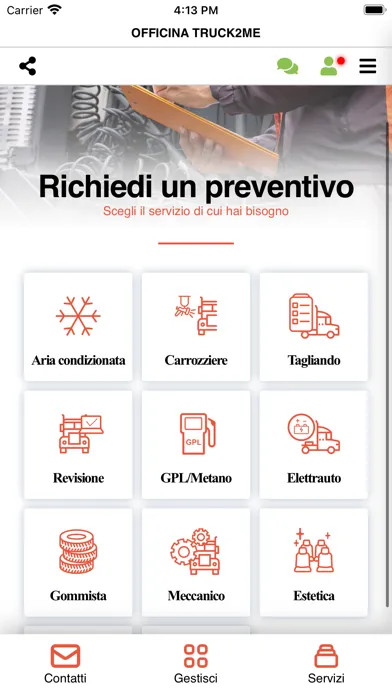 Attraverso l’App Officina Truck2me, un’app demo strutturata appositamente per farti toccare con mano il nostro servizio di App dedicate ai professionisti del mondo Cargo, potrai prenotare un appuntamento o richiedere un preventivo, proponendo direttamente una data di appuntamento alla tua officina di fiducia; inoltre potrai consultare le promozioni attive e prenotarti al prezzo più conveniente.