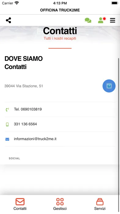 Tramite la sezione Contatti potrai ricevere assistenza dalla tua officina o consultare le pagine social!