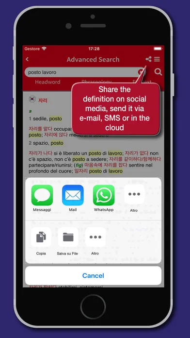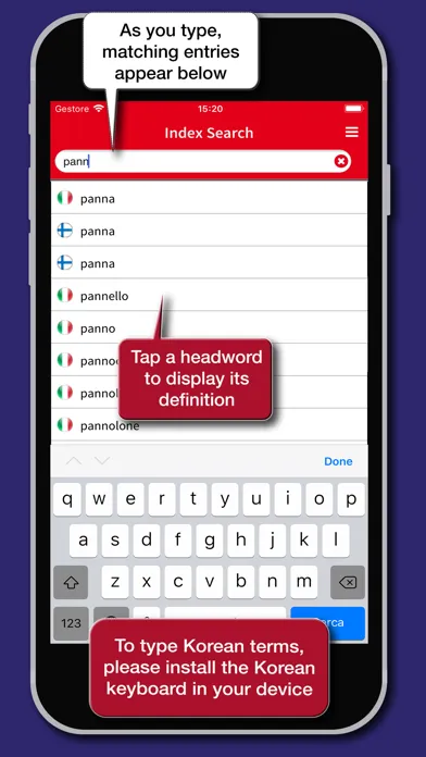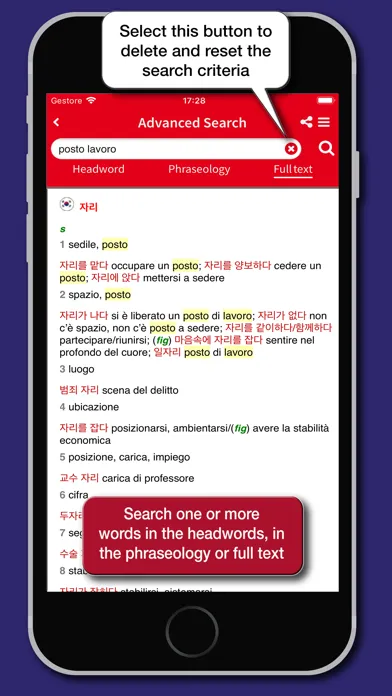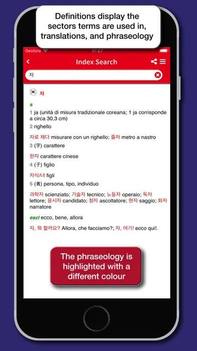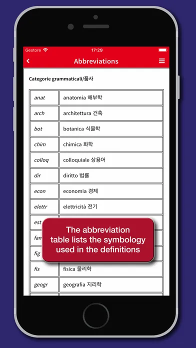 This app provides the Hoepli edition of the Korean-Italian/Italian- Korean Dictionary from Antonietta Lucia Bruno, Imsuk Jung, and Oenjoung Kim. With over 24,000 headwords graphically displayed in a clear and immediate way, the dictionary is characterized by a rich and updated content, making it a user-friendly and high-quality dictionary, a step higher than other dictionaries of the same category.