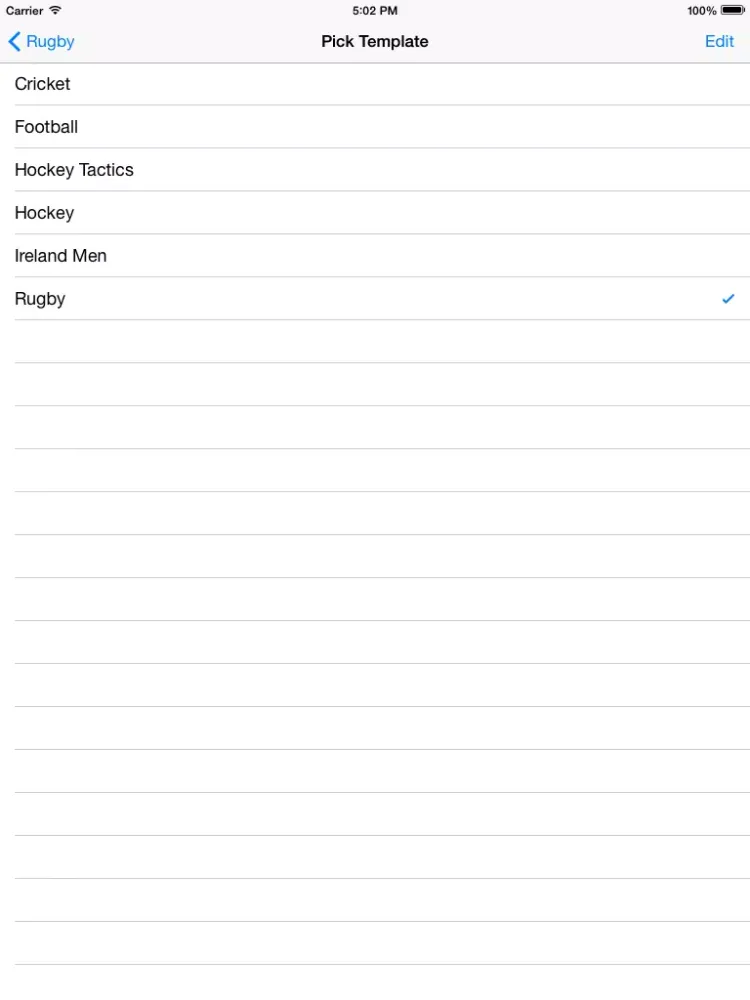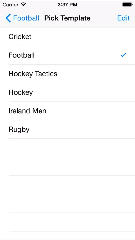 Default templates are provided for (Football, Rugby, Cricket, Hockey).