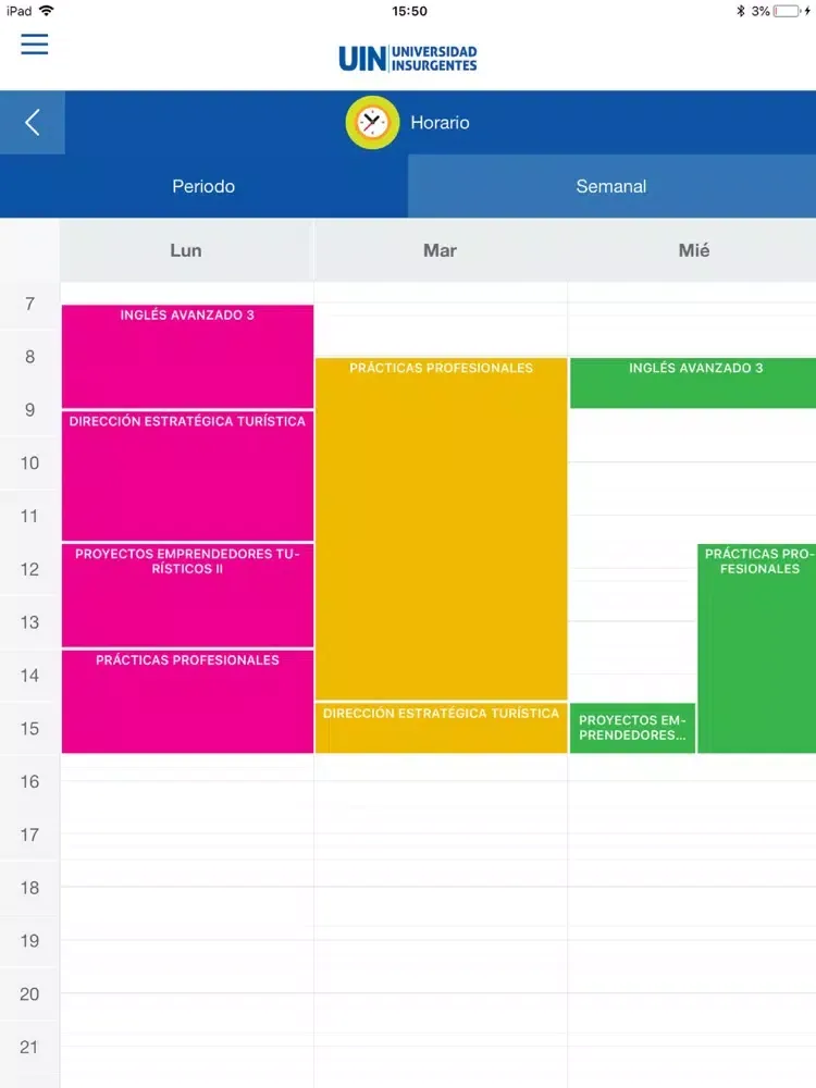 · Mis horarios: conoce tu horario de clases, y datos específicos sobre cada materia.