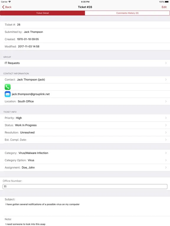 GroupLink everything HelpDesk® iPad Screenshots