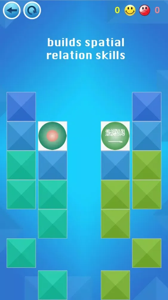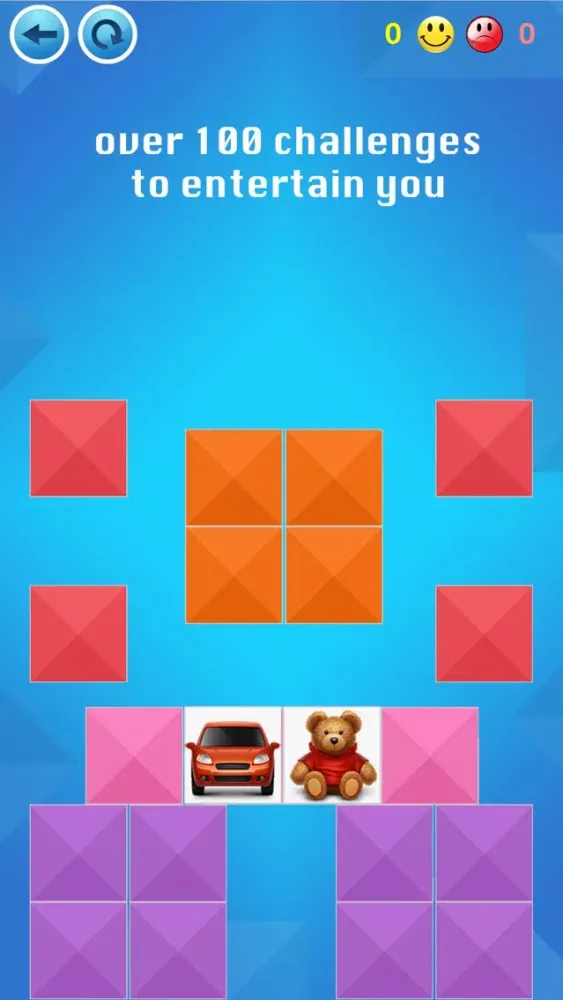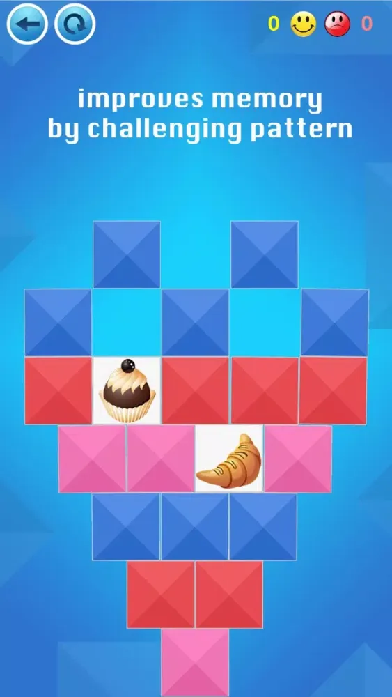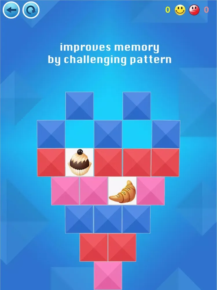 If the two pieces don’t match, their icons are hidden again and the pieces are bounced around so that it’s challenging to figure out what piece went where. Then you guess again to try to find a matching pair.