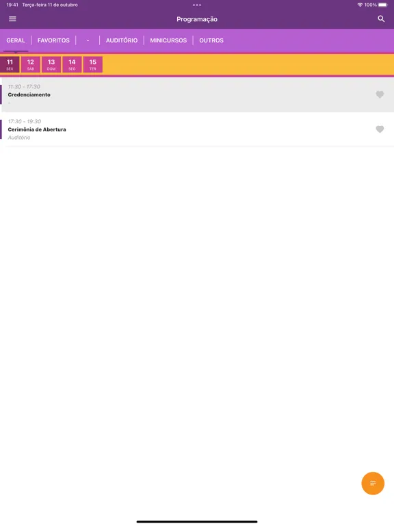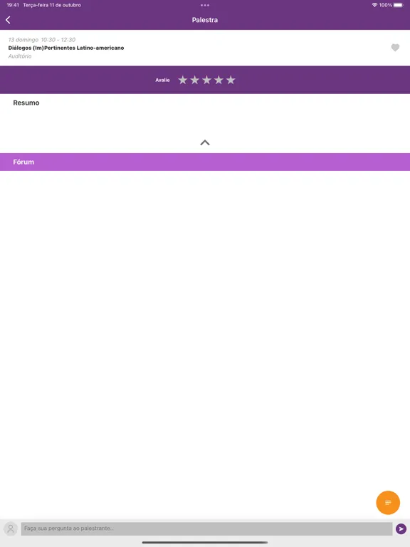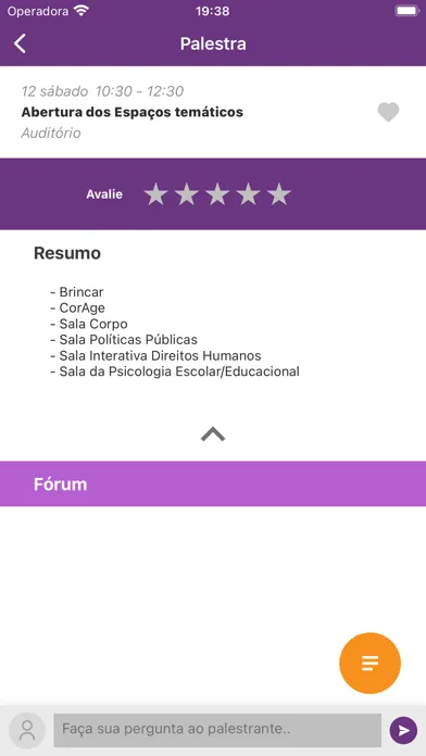 Ao final do evento, também vamos querer a sua opinião, que poderá ser dada respondendo a pesquisa através do próprio aplicativo.