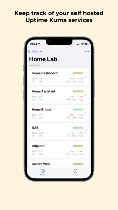 Uptime Kuma Manager allows you to connect to your Uptime Kuma servers and monitor the services directly from your phone. With a clean and simple interface, you can quickly view the status of your services and receive notifications when they go down.