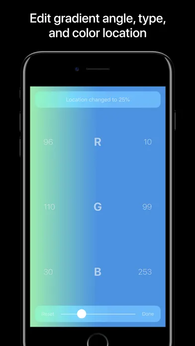 Use the bottom toolbar to change the angle of linear gradients, switch the type from linear to radial, and to adjust the location of the colors.