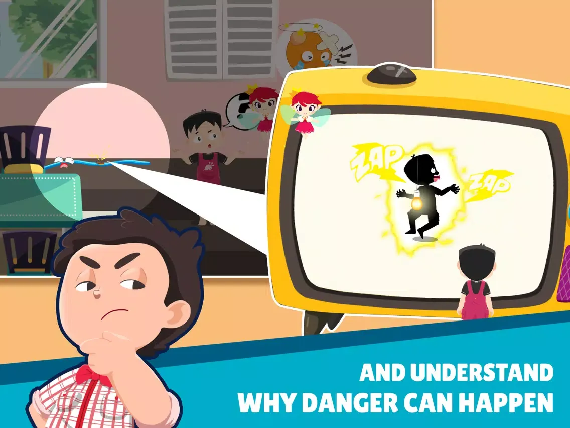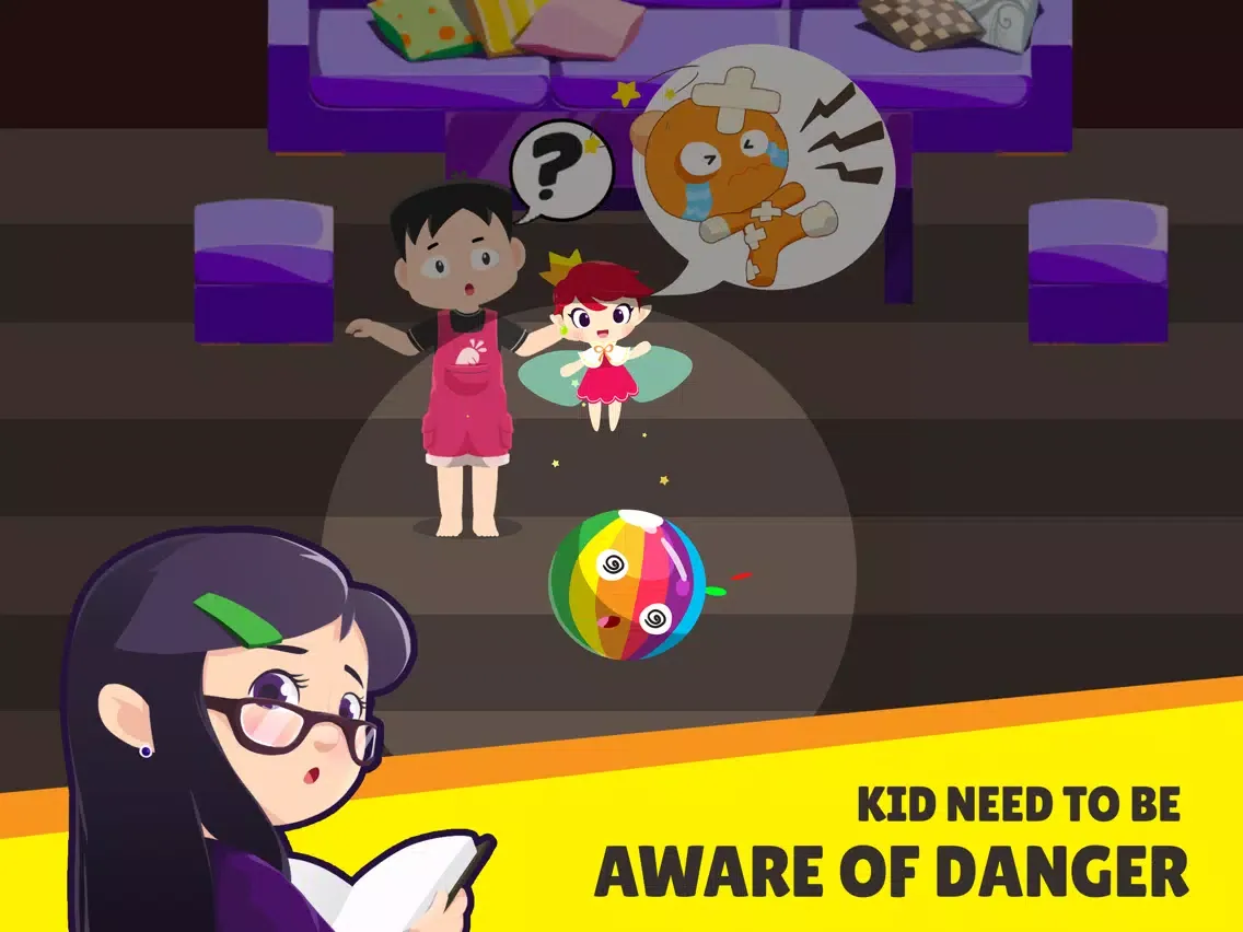 "Safety for Kid - Finding danger“ aims to address such concerns. This game for kid deals with different safety issues children encountered at home, such as playing with electric wire, slipping on the floor, bumping on open window corners etc. Each of these dangers is well explained by animations and audio material helping them understand issues and learning about right reactions. The operation of this safety game is simple and child-friendly so kids can easily navigate the different scenarios.