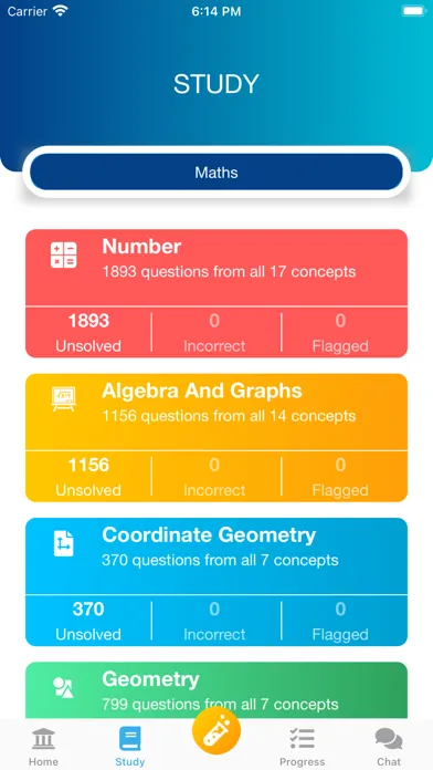 The app also helps you to monitor your progress and scores and shows your improvement by topic so that you can focus more or less on topics as required.