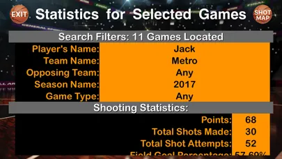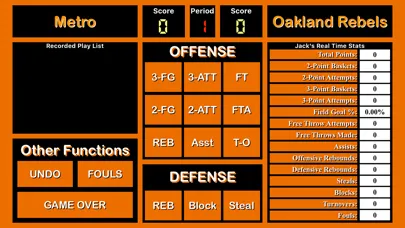 This application was designed to track statistics for one player during a game. It has a very simple interface that allows you to track stats while a game is progressing. In addition to numerical stats, keep track of shot locations for buckets and attempts. Keep track of free throw attempts and percentages. Keep track of fouls and types of fouls.