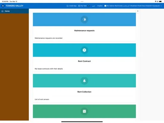 The Bin Salman application was created to help landlords and tenants create a successful contracting relationship. The tenant can submit a request for maintenance of the real estate unit, track the maintenance process, view the details of his lease contract and the rents paid, and follow up on his account statement. He can also submit requests for water and electricity problems.