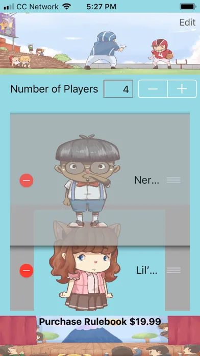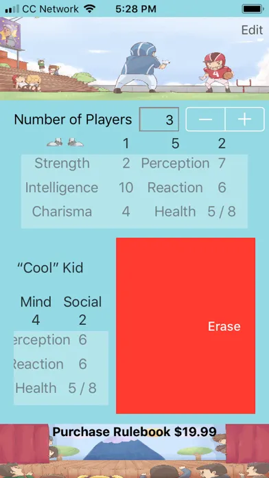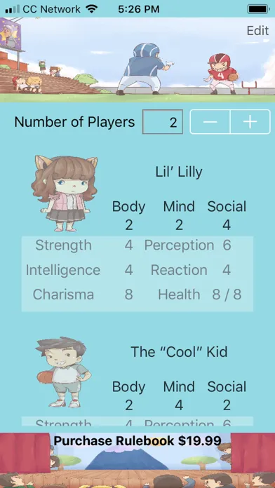 Don't print endless copies of LillyPal™ cards, just use the handy companion app to track all of your players' character information. Input attributes (with auto calculated stats), track changes to health, even select a character image.