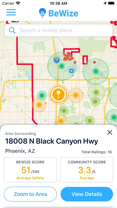 BeWize accurately displays the safety of any area in the USA. Use BeWize when you’re planning a vacation, meeting a friend for coffee or simply getting off the freeway to grab gas. You can also help keep others safe by leaving your own ratings.