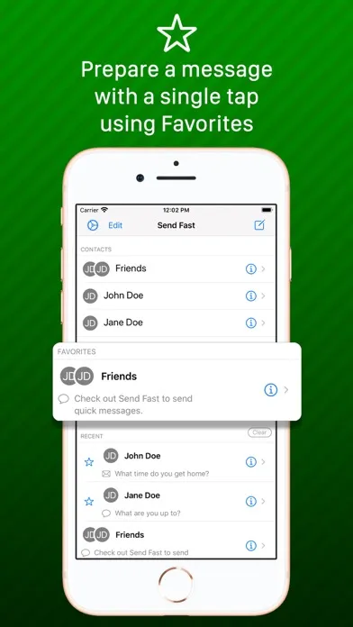 Add recent messages to a list of Favorites. Resend messages with just one or two taps.