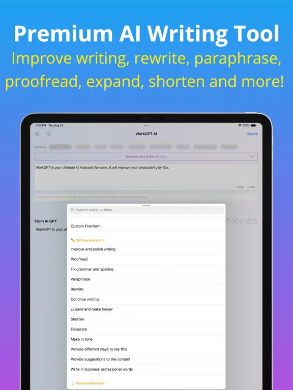 Capturas de pantalla de WorkGPT AI Copilot iPad
