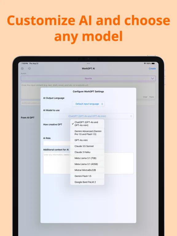 So, why wait? Start using WorkGPT AI app today and embrace the future of work with your ultimate assistant, powered by advanced technologies including GPT/GPT-4, Gemini Pro 1.5, Claude Sonnet 3.5, Llama 3.1 405B/70B, Mistral, and more! WorkGPT is designed to transform your work experience.