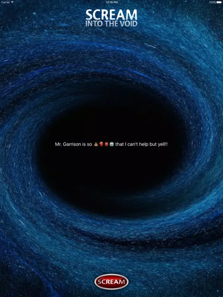 You simply tap whatever awful thing you're thinking, hit the scream button, and the message will be deleted forever.