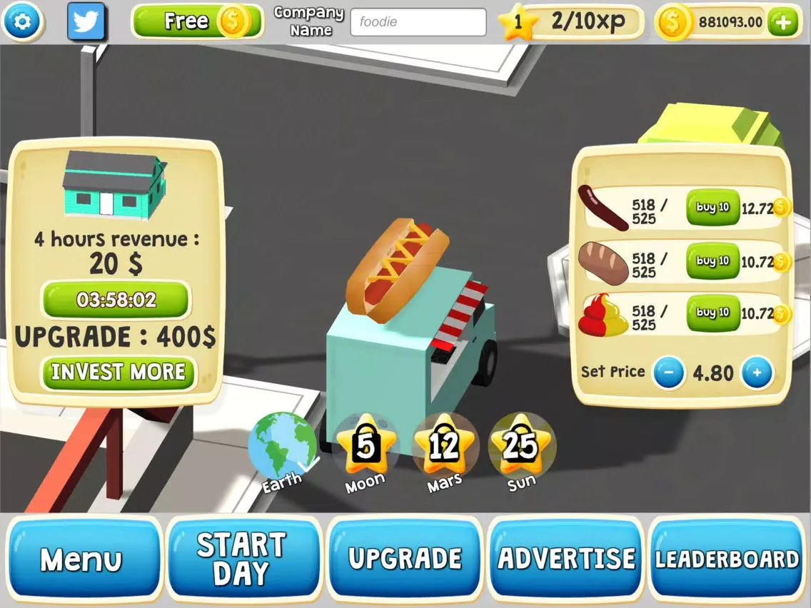 Choose a location carefully to take over the market and beat the "Evil Hotdog Company".