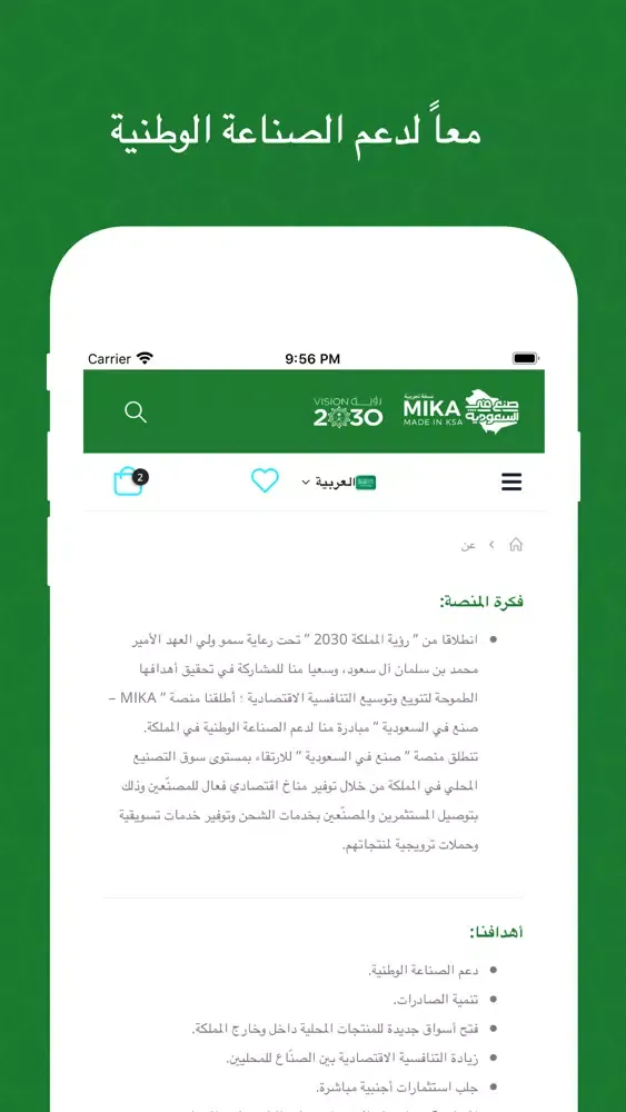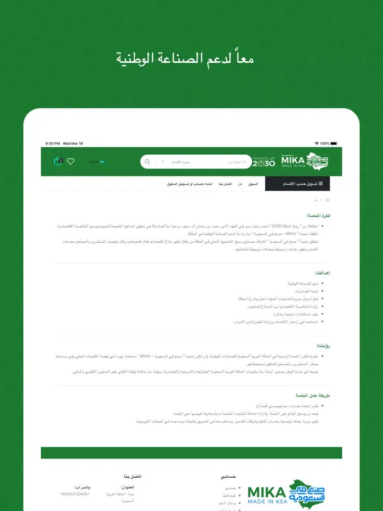 تنطلق منصة ” صنع في السعودية ” للارتقاء بمستوى سوق التصنيع المحلي في المملكة من خلال توفير مناخ اقتصادي فعال للمصنّعين وذلك بتوصيل المستثمرين والمصنّعين بخدمات الشحن وتوفير خدمات تسويقية وحملات ترويجية لمنتجاتهم.