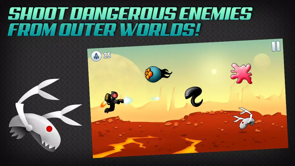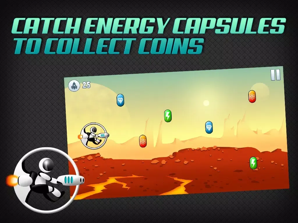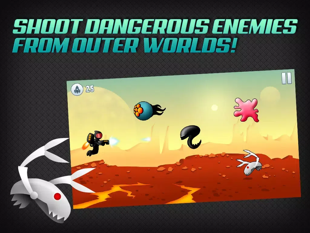 In this game, you are playing as a space hunter on a mission. As you discover things from outer space, you come to face both good and bad stuff. In the world that you are in, you’ll find plenty of energy capsules along the way. Catch these capsules as your means to collect coins. Use the coins to unlock other fearless space hunters! Keep an eye on dangerous enemies that you may encounter! Shoot these aliens and make sure they never get to you! Earn a high score and see your name on the Game Center leaderboards!