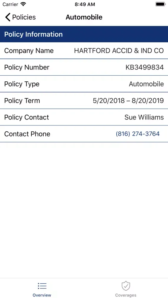 • Instantly review the status and details of your insurance policy