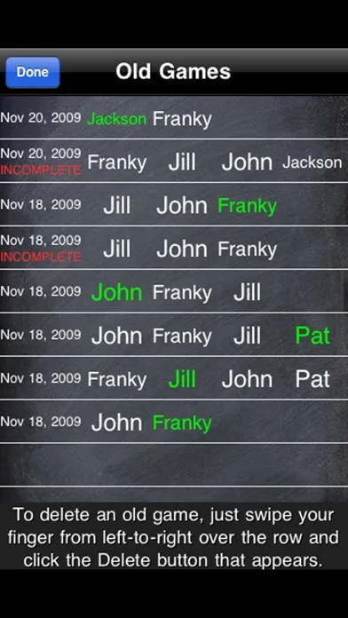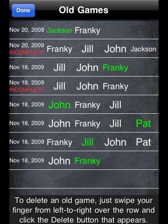 • Keep a history of all games played