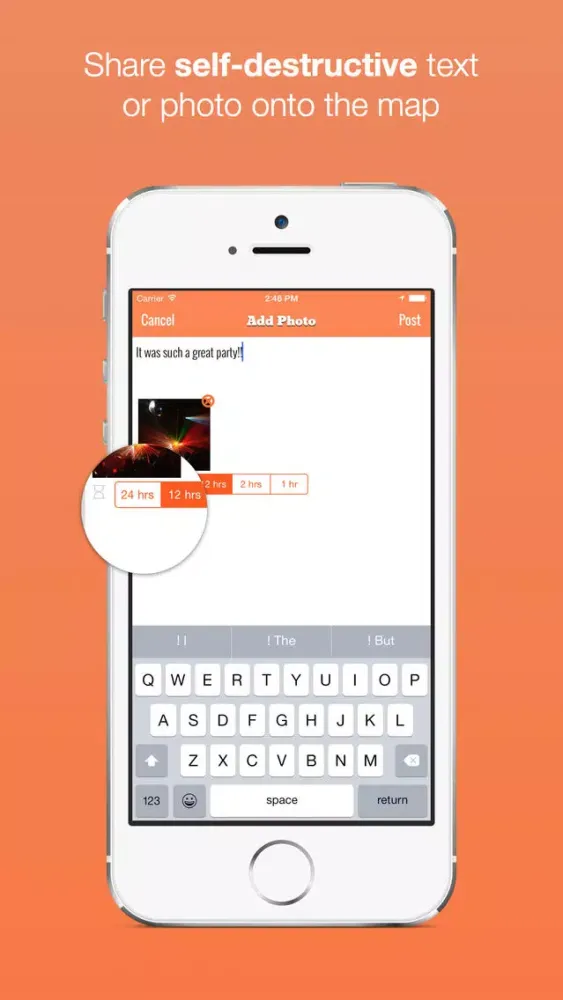 Poofr is an all new anonymous social network. It allows you to post self destructive text or picture onto the map. It is