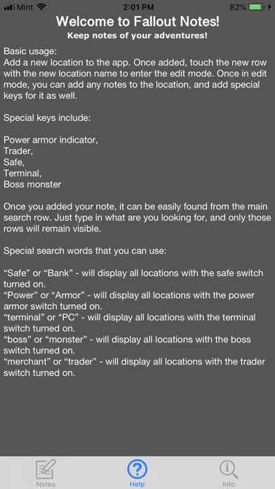 Fallout Location Notes allows you to store any notes about your adventures and retrieve them back when needed.