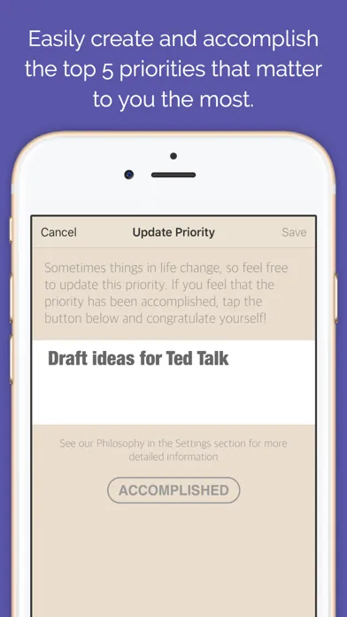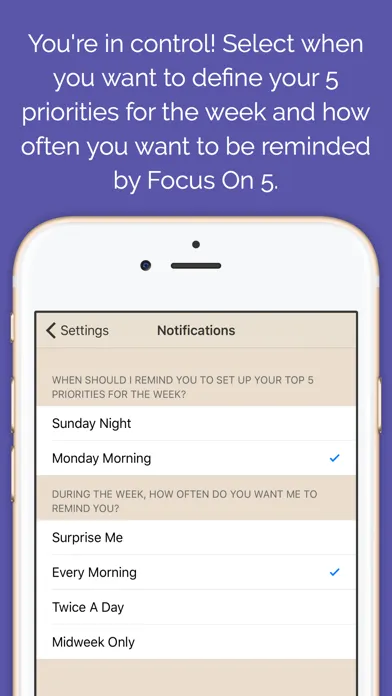 A: Having 5 priorities for the week makes it easier to focus on what matters to you most. 5 is a manageable number of priorities, and you can see them all at once on your iPhone screen.
