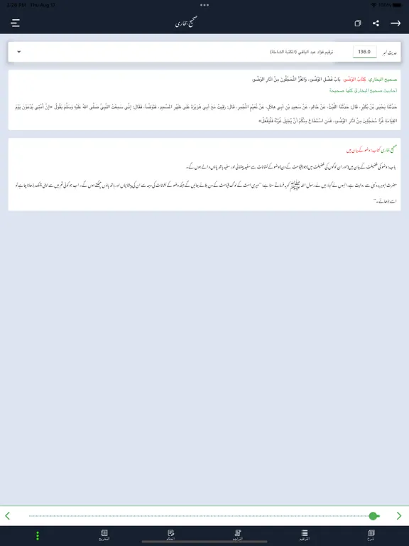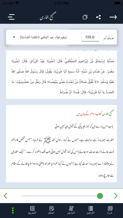 یہ ایپلیکیشن اردو زبان میں خدمت حدیث شریف کے سلسلے میں ایک عظیم الشان قدم ہے۔یہ ایپلیکیشن اہل علم کے ہاں معروف حدیث کے عربی سوفٹ وئیر مکتبۃ الحدیث المعروف بہ کتب تسعہ کی طرز پر آن لائن سہولت کے ساتھ تیار کی گئی ہے۔اس ایپلیکیشن پر احادیث مبارکہ اپنی تمام تر تفصیلات کے ساتھ موجود ہیں، تاکہ عوام الناس بھی حدیث کے حکم سے بخوبی واقف ہو سکیں۔اس ایپلیکیشن پر اب تک حدیث کی چھ معروف کتابیں (صحیح بخاری، صحیح مسلم، جامع ترمذی، سنن ابو داؤد، سنن ابن ماجہ اورسنن النسائی) صحاح ستہ اپلوڈ کی جاچکی ہیں،جامع ترمذی کے علاوہ باقی پانچ کتب کے دو دو اُردو تراجم اپلوڈ ہیں، جامع ترمذی کا فی الوقت ایک ہی اردو ترجمہ ہے ۔اس ایپلیکیشن پر موجود کسی بھی حدیث کو سوشل میڈیا پر شیئر کرنے کی سہولت بھی دی گئی ہے۔