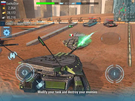 - Improve your tank armor, speed, damage, reload time and other features with epic upgrade system.