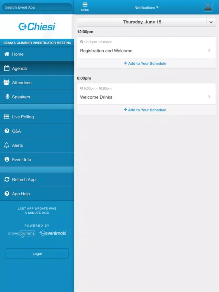 This mobile app is to be utilized during the Beam & Glimmer Investigator Meeting taking place in June 2017. It will include all logistical & study specific details.