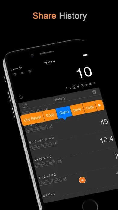 - Add notes to history of your calculations, and you can share
