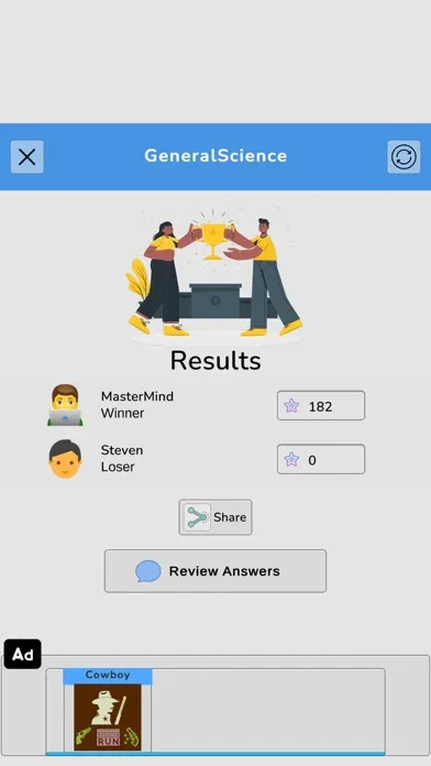 At the end of the quiz, players have the option to review their attempted answers for future reference and improvement in their learning.