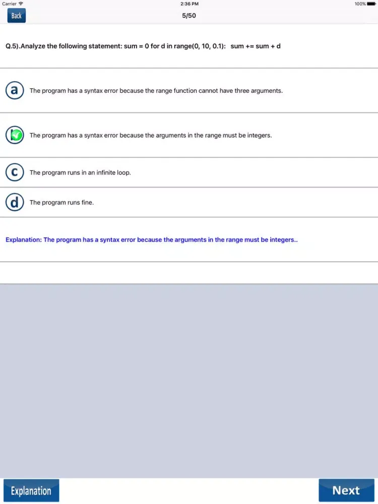 Capturas de pantalla de Python Quiz Questions iPad