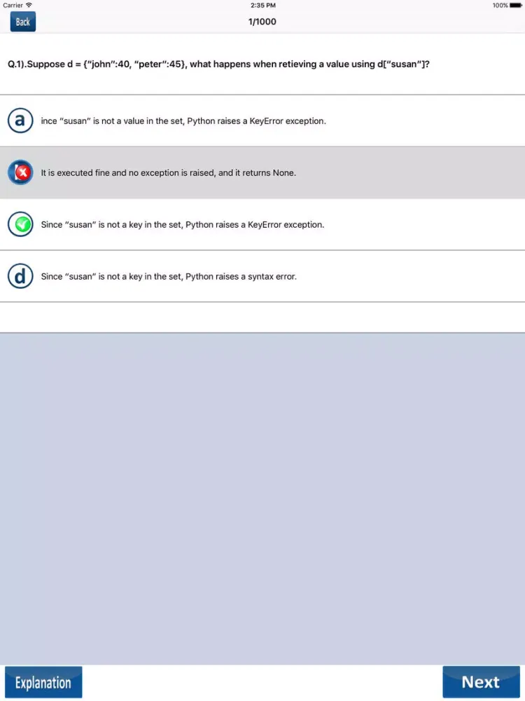 Python Quiz free app providing 3000 questions for your Python Training.