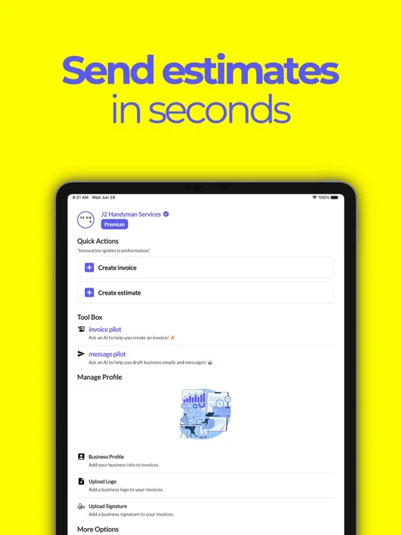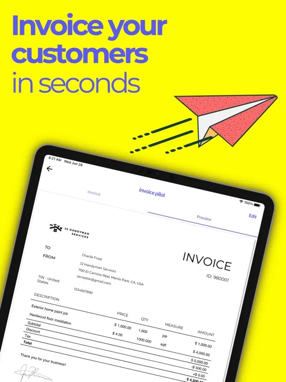 Invoice anytime, anywhere. Create professional invoices and estimates in seconds.