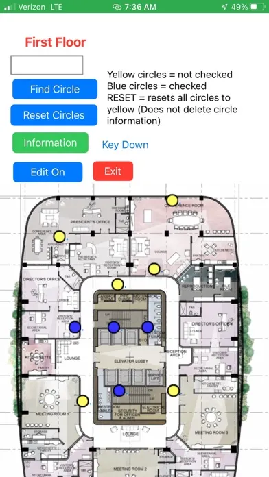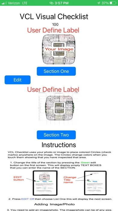 VCL Checklist 100 uses your photo, map or image from Photos on your iPhone/iPad these can be of any size. You can place colored Circles (check marks) anywhere on the image. The Circles change colors when you touch them showing that you have inspected that area. You can load in any drawing or image and place colored circles at different points on the drawing/image that should be checked. For example: You need to check Exit lights or fire extinguishers each month or a preflight for an airplane. Load in a floor plan image or any image and place circles at all Exit lights, fire extinguishers or other areas to be checked. The circles are all yellow when unchecked, then when you need to check each Exit light or fire extinguisher just touch the yellow circle and it will turn blue showing that you have checked it. The app remembers which one you have checked. You can reset the blue circles to yellow at any time. The Information screen shows all circles that have been checked, you can add information for each circle, fire extinguisher, exit light or other information. This can also be printed. This version (VCL Checklist 100) allows up to 100 checkmarks. An Upgraded versions is 100 checkmarks. If a building is large you can use VCLChecklist 100 for lights, VCL Checklist 50 for Fire extinguishers, and VCL Checklist 25 for other areas to be checked.