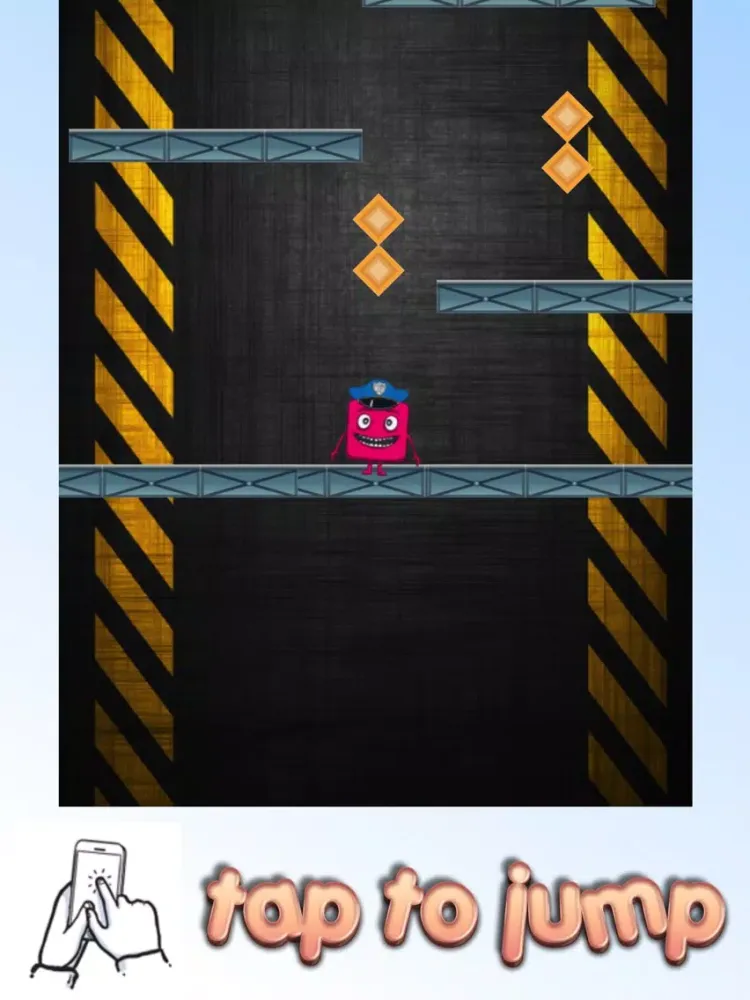 Officer Mr. Cube is one tap based game where you control your character by tilting your device and tap to jump upwards.