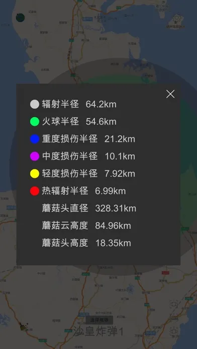 There are dozens of commonly used nuclear bombs built in, along with related parameters such as radiation radius, fireball radius, thermal radiation radius, etc. There are multiple maps to choose from for simulation, and you can separately view the explosion effect and its range. email:proxima.centauri0@gmail.com