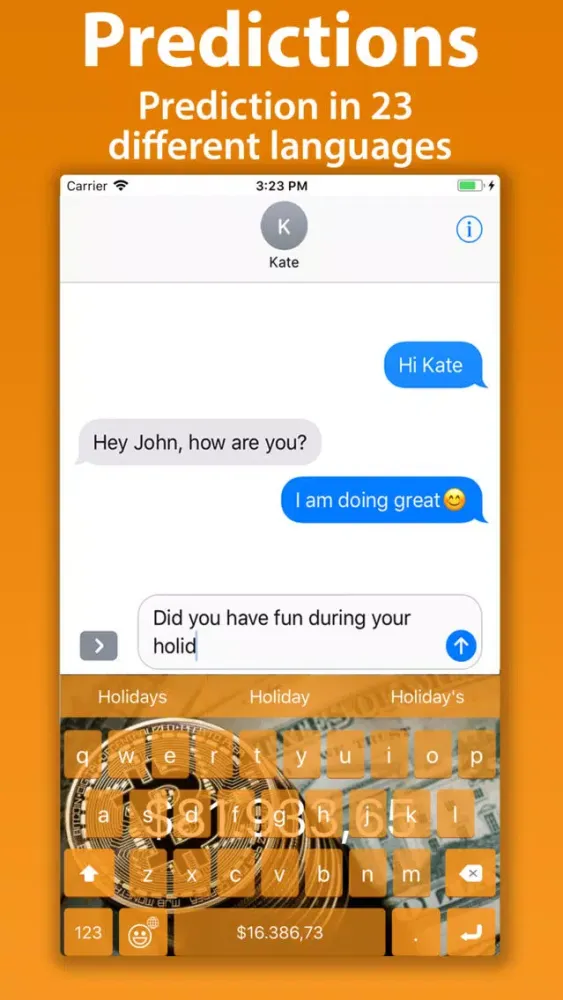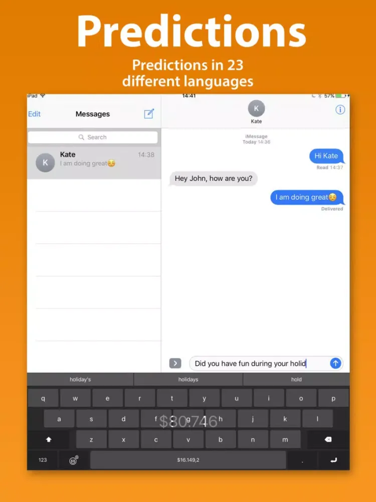 - Word predictions in 23 different languages