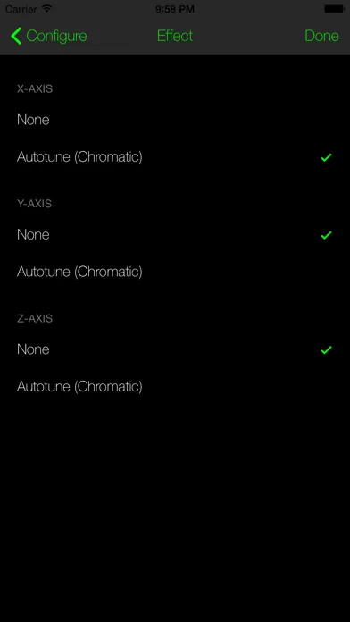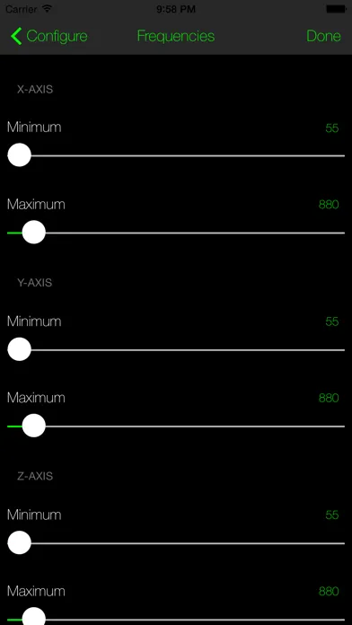 This app uses the device's motion sensors and touchscreen to modify the frequency of the output audio. Inputs include touchscreen, accelerometers, gyroscopes, and the magnetometers. For each individual axis you can adjust max/min frequency, sensitivity, waveform, and effects.